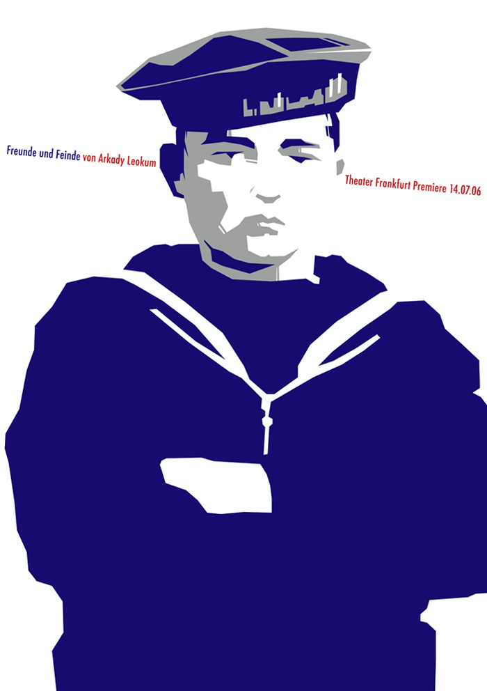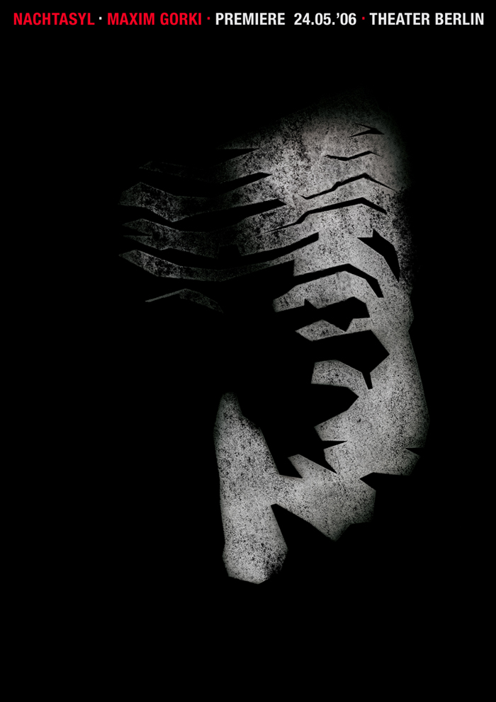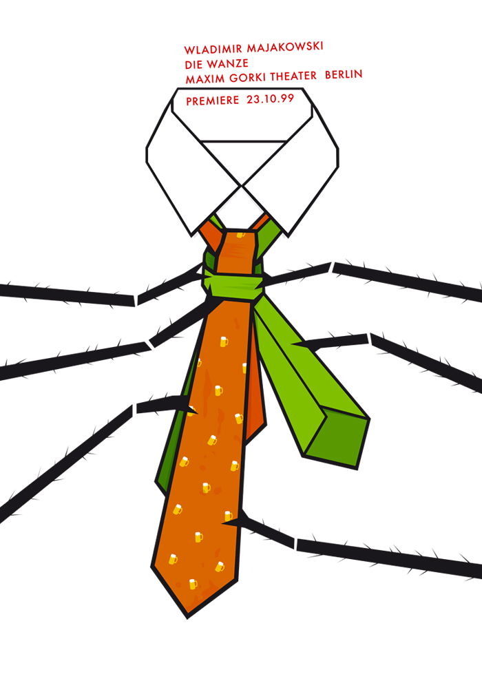 Plakate für die russischen Theaterstücke »Freunde und Feinde«, »Nachtasyl« und »Die Wanze«.