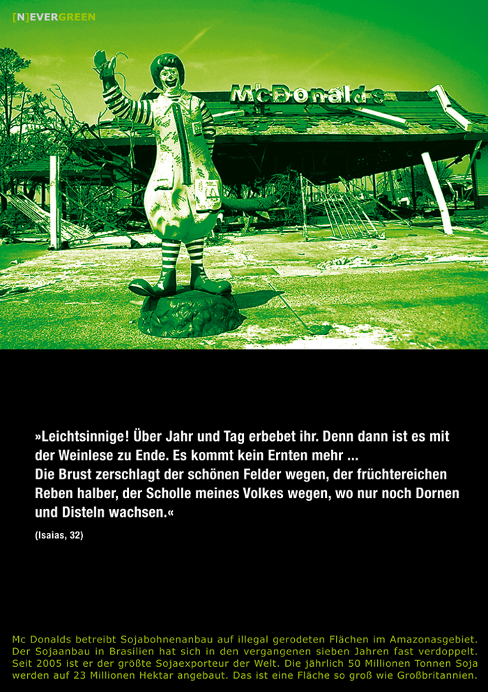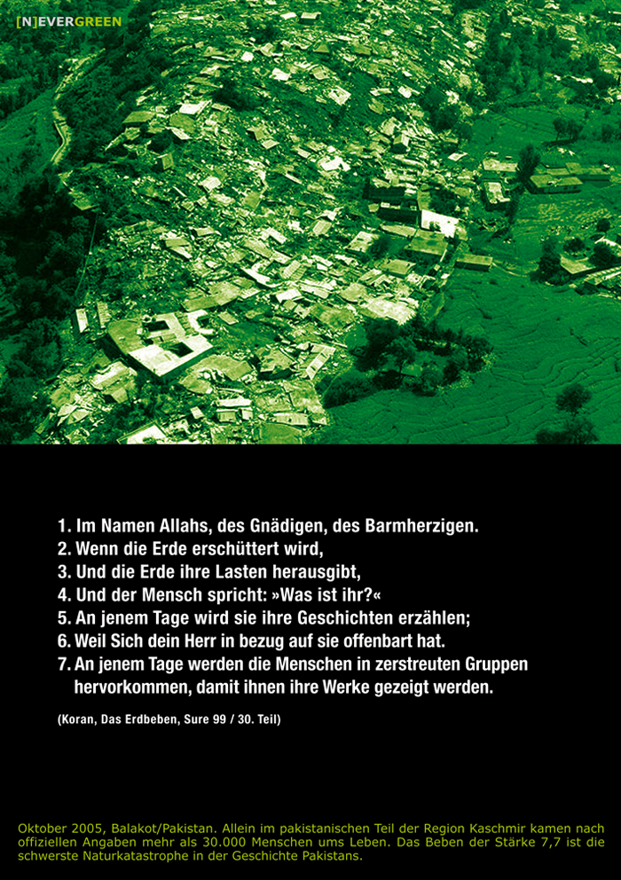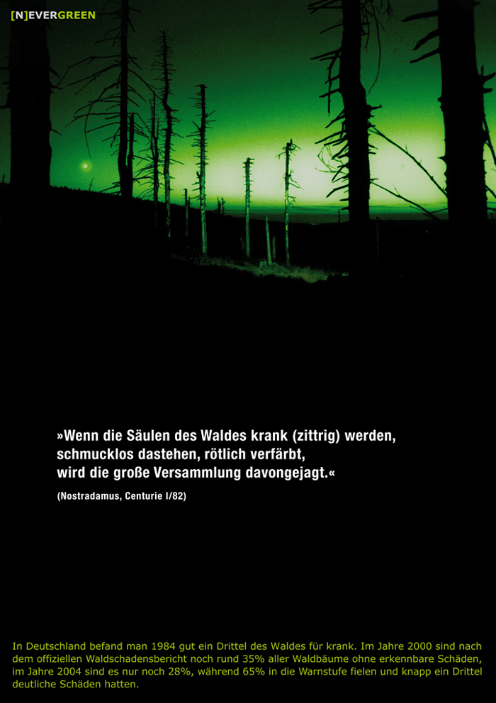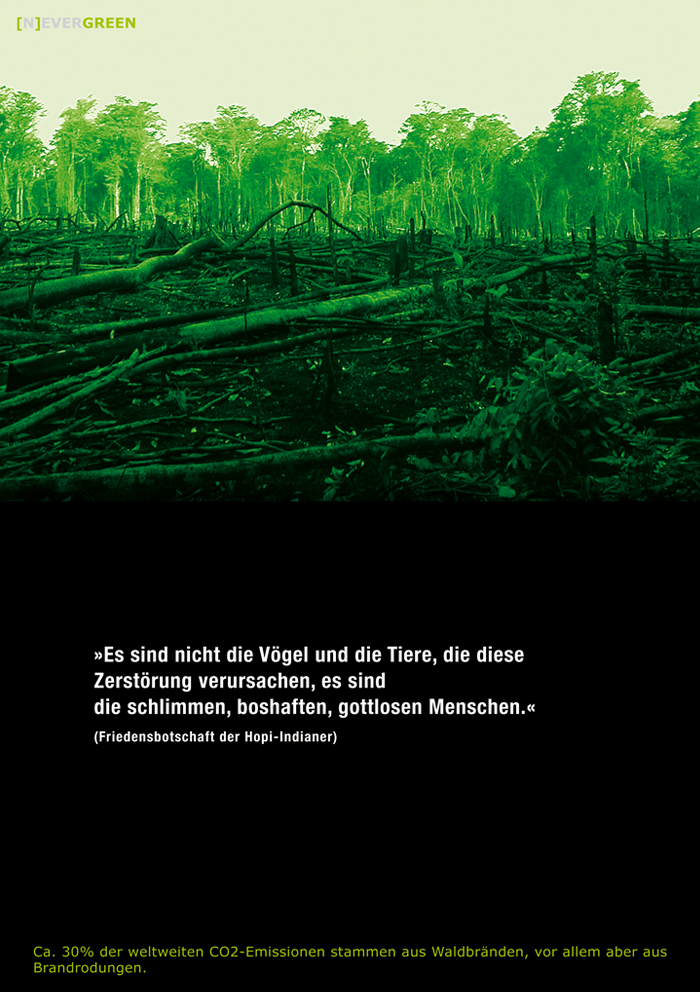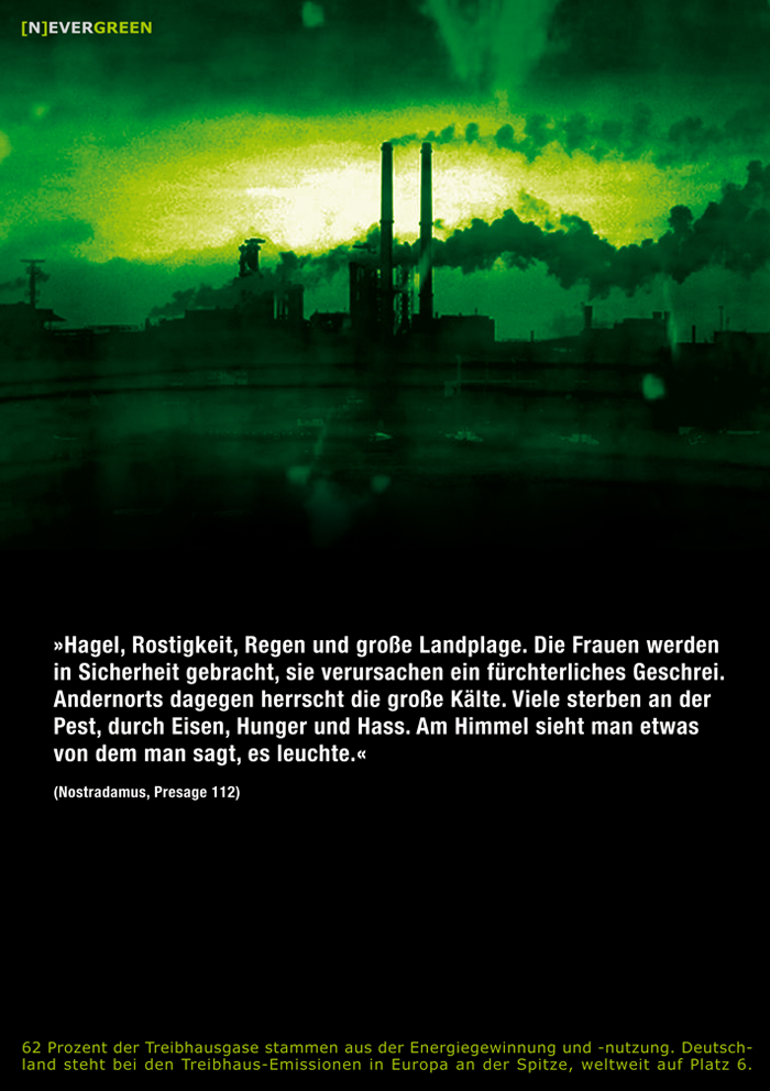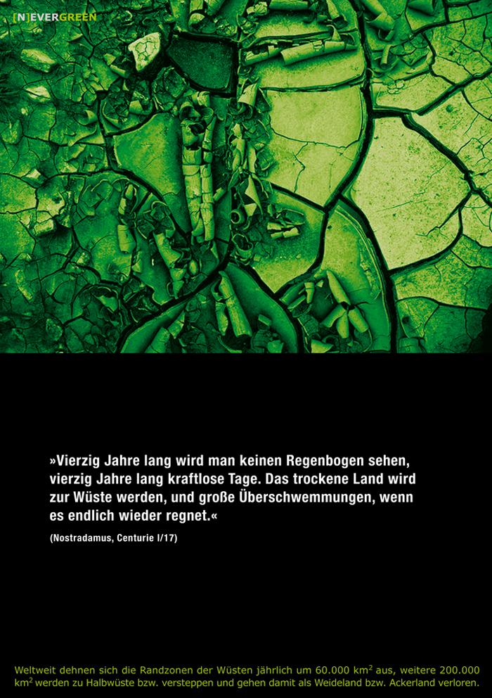 Kampagne zum Thema Klimawandel. Vorhersagen und Zitate aus alten Schriften und Überlieferungen über kommende Klimaveränderungen werden aktuellen Ereignissen und Fakten gegenübergestellt.